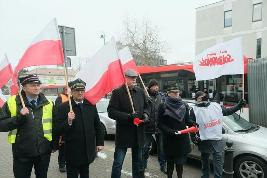 Zdjęcie: Pikieta kolejarzy z NSZZ Solidarność przed konsulat...