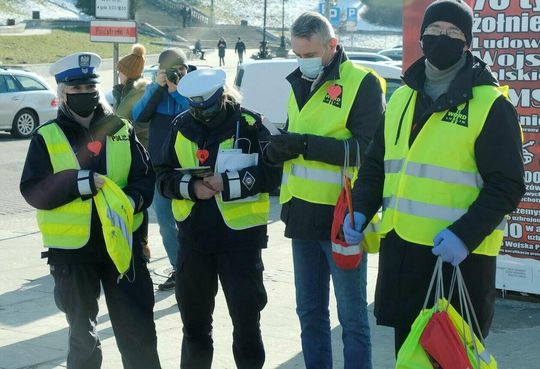 Zdjęcie: Policjanci z drogówki wspólnie z WORD Lublin rozdaw...