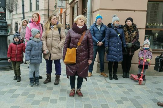 Zdjęcie: Po hejnale miejskim trębacz odegrał hymny Ukrainy i...