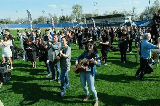 Gitarzyści grają Hey Joe na stadionie w Lublinie