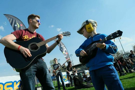 Gitarzyści grają Hey Joe na stadionie w Lublinie