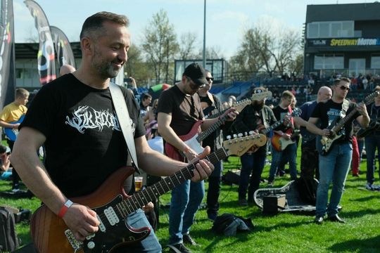Gitarzyści grają Hey Joe na stadionie w Lublinie