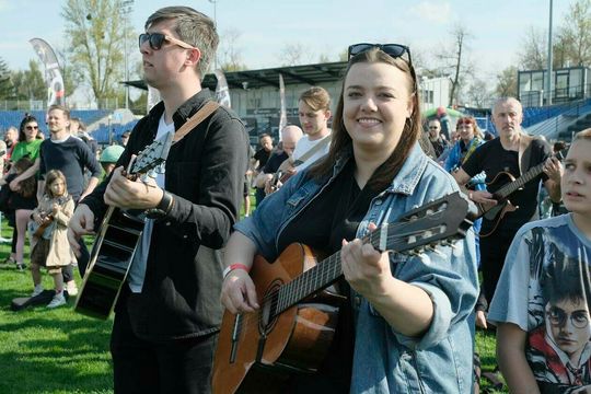Gitarzyści grają Hey Joe na stadionie w Lublinie