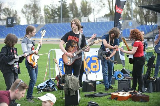 Gitarzyści grają Hey Joe na stadionie w Lublinie