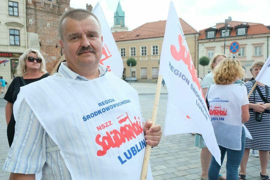 Zdjęcie: Protest pracowników DPS-ów przed lubelskim ratuszem