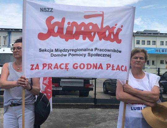 Protest związkowców z DPS przed Starostwem Powiatowym w Zamościu