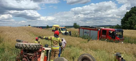 Zdjęcie: Wypadek ciągnika rolniczego w Słodkowie Pierwszym