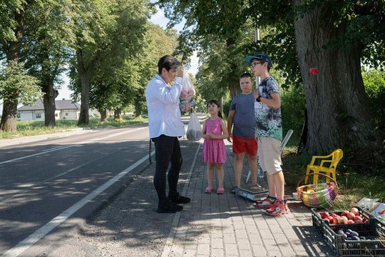 Krasienin. Dzieci sprzedają owoce