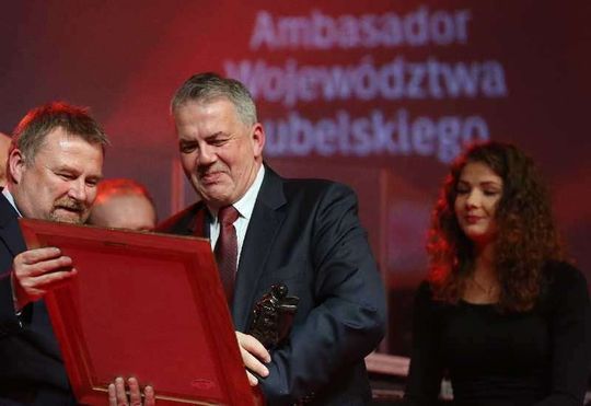 Prof. Andrzej Kidyba, Wojewódzki Szpital Specjalistyczny w Białej Podlaskiej i Ursus S.A. zostali Ambasadorami Województwa Lubelskiego za rok 2014. Wyróżnienia odebrali podczas uroczystej gali w Targach Lublin. Fot. Maciej Kaczanowski