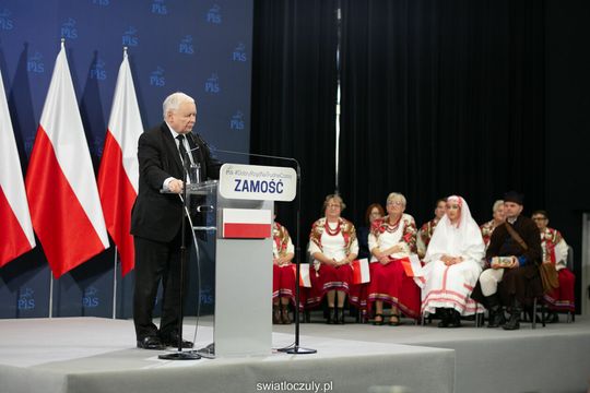 Jarosław Kaczyński na spotkaniu z wyborcami w Zamościu