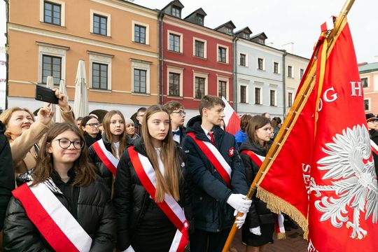 Święto Niepodległości 2022 - uroczystości na Rynku Wielkim w Zamościu
