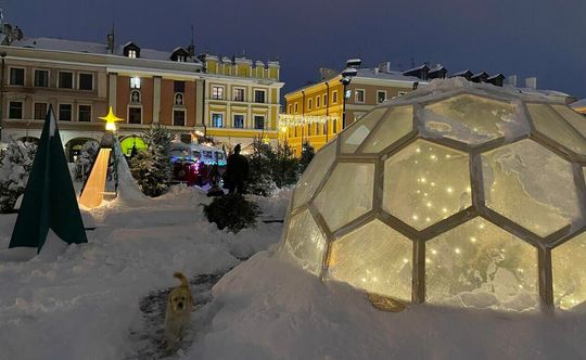 Zamość świąteczny pod śniegiem