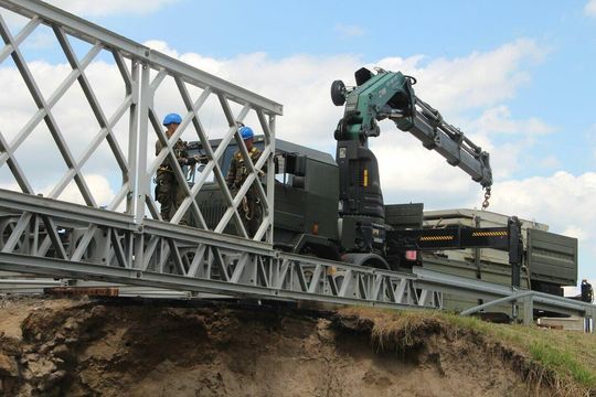 Zdjęcie: Saperzy stawiają most w miejscu wyrwy w Kuzawce