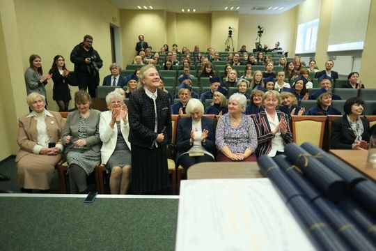 Uroczyste odnowienie dyplomów pielęgniarek po 50 latach od ukończenia studiów.