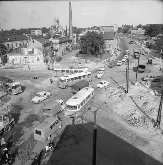 Ruch uliczny na skrzyżowaniu placu Bychawskiego i ulic 1 Maja, Kunickiego oraz Wolskiej