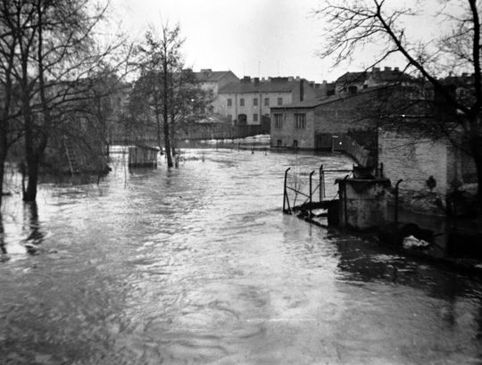 Widok ulicy Kościelnej w czasie powodzi w Lublinie