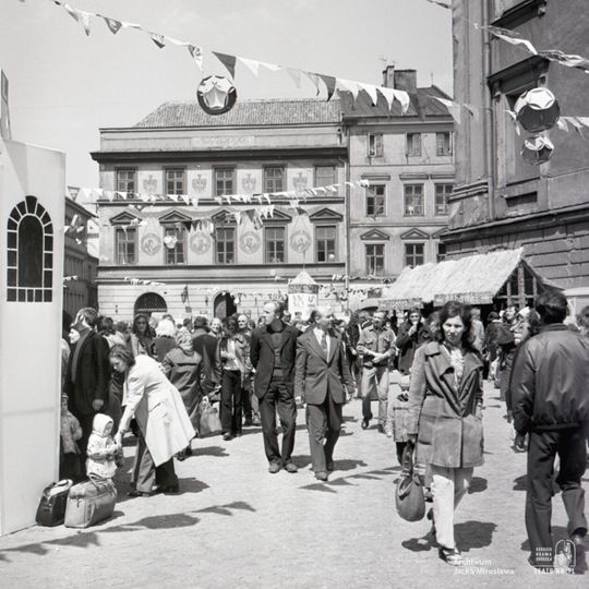 Rynek Starego Miasta w Lublinie podczas jarmarku ludowego. Widok w stronę kamienicy pod adresem Rynek 2. W tle z prawej widoczny wlot ulicy Olejnej