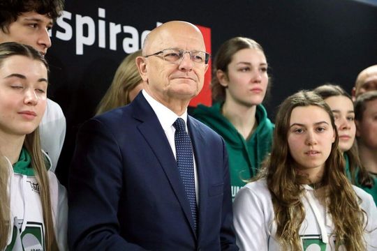 Konferencja prasowa Krzysztofa Żuka z udziałem lubelskich sportowców, dotycząca działań miasta na rz