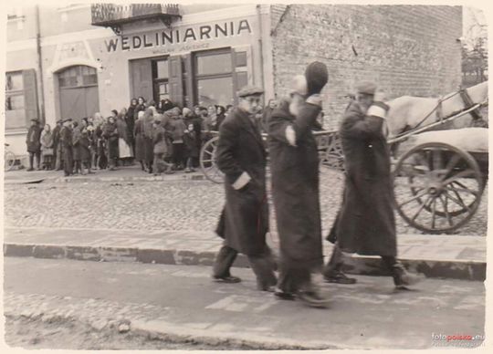 1940 r. Ul. Poniatowskiego w Rykach. Wędliniarnia Wacław Jaśkiewicz.