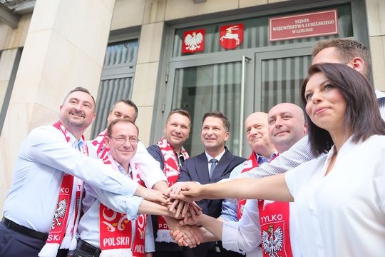 Zdjęcie: Konferencja prasowa przed siedzibą UMWL