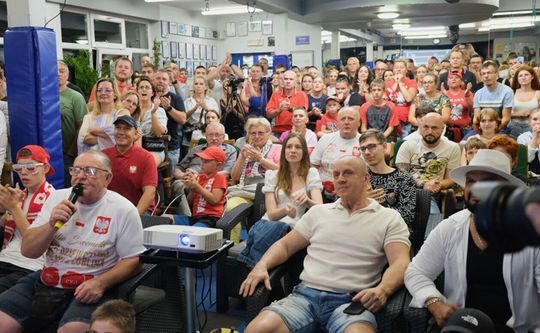Sympatycy boksu w strefie kibica w KS Paco dopingując w finale Julię Szeremetę nie szczędzili gardeł