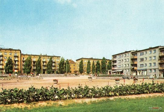 Lata 1968-1969. Świdnik. Domy przy ul. Sławińskiego, widoczny także obecny plac Konstytucji 3 Maja.