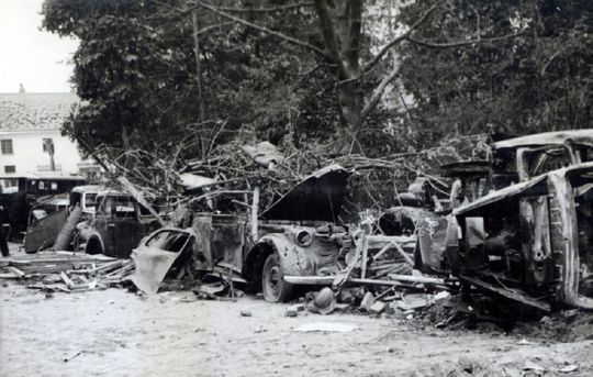 Zniszczone auta na placu Litewskim.