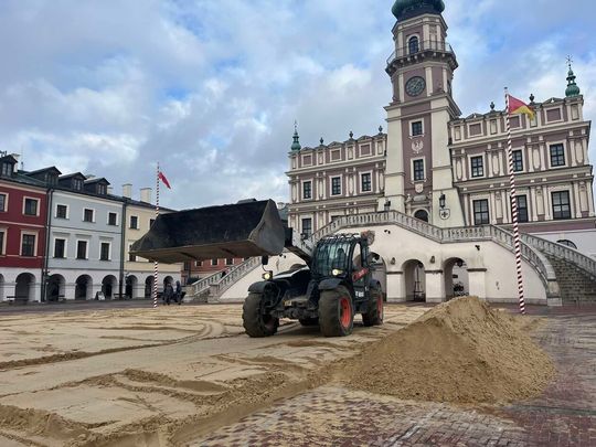 Montaż lodowiska na Rynku Wielkim w Zamościu