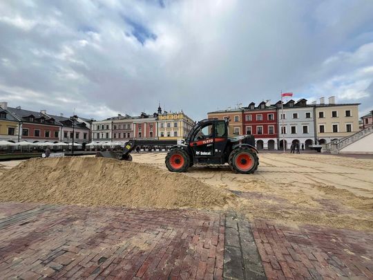 Montaż lodowiska na Rynku Wielkim w Zamościu