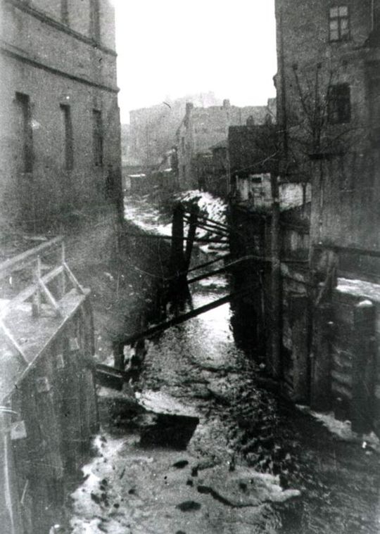 Dzielnica żydowska na Podzamczu, widok z mostu na Czechówce, na ulicy Szerokiej.