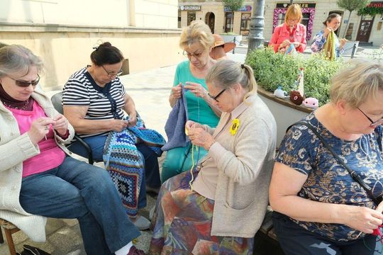 Zdjęcie: Światowy Dzień Dziergania przed lubelskim Ratuszem
