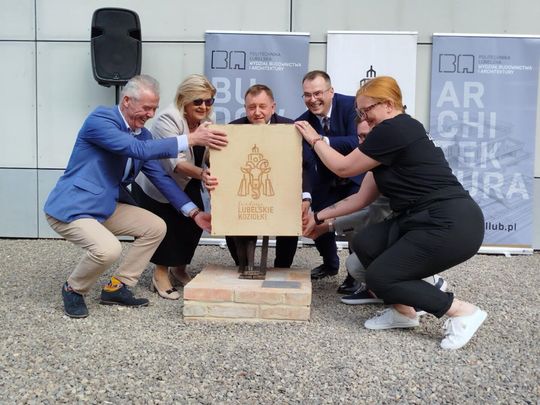 Koziołek Stach pilnuje planów na Politechnice Lubelskiej