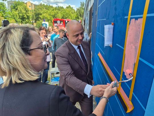 Malowanie muralu na Światowy Dzień Uchodźcy w Lublinie