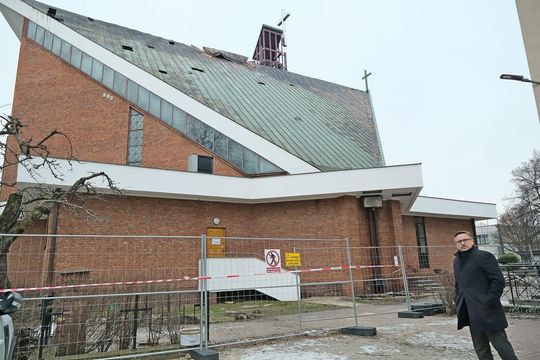 Oględziny spalonego kościoła przy ul. Kunickiego