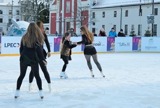 Noworoczny pokaz na lodowisku na Placu Litewskim w wykonaniu łyżwiarzy z UKŁF Salchow Lublin