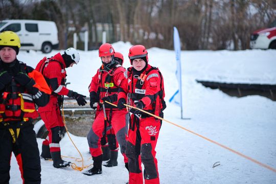 Ćwiczenia Strażaków na zamarzniętym Zalewie Zemborzyckim