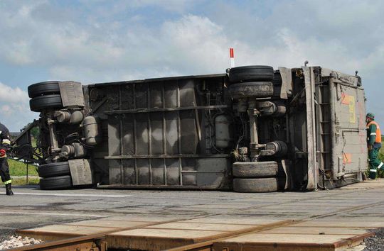 Przewróciła się ciężarówka przewożąca świnie