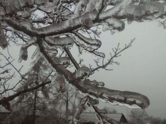 Grabowica (gmina Susiec): Łąka jak ze szkła po opadach marznącego deszczu