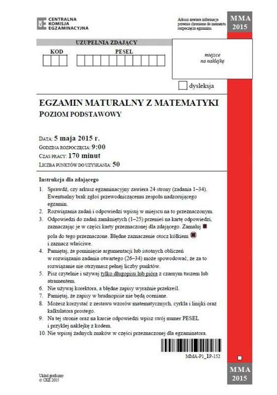 Matura 2015 - matematyka. Arkusz z CKE