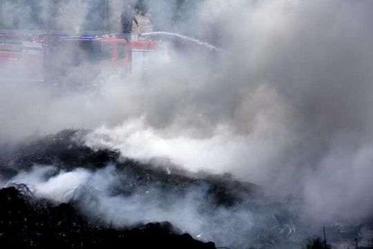 Dogaszanie pożaru składowiska opon w Rykach