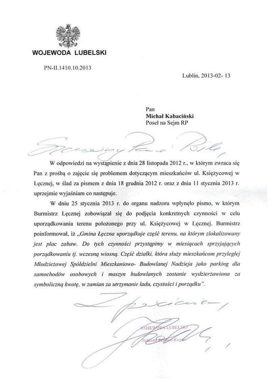 Zdjęcie: Wymiana korespondencji ws. ul. Księżycowej w Łęczen...