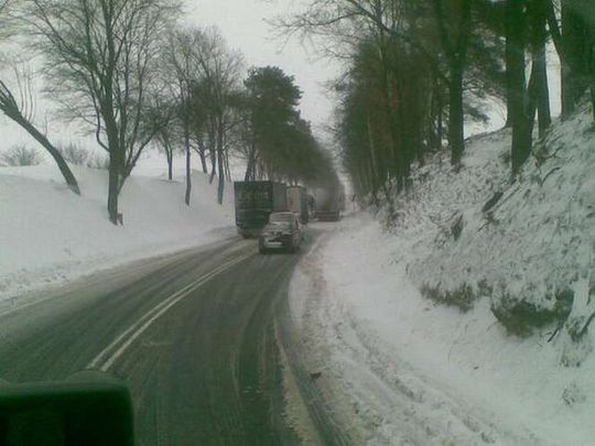 Ciężarówki z trudem, ale jednak pokonują górę
