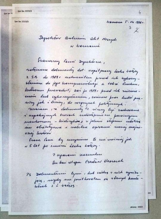 List Kiszczaka do Dyrektora Archiwum Akt Nowych i akta TW Bolka w IPN