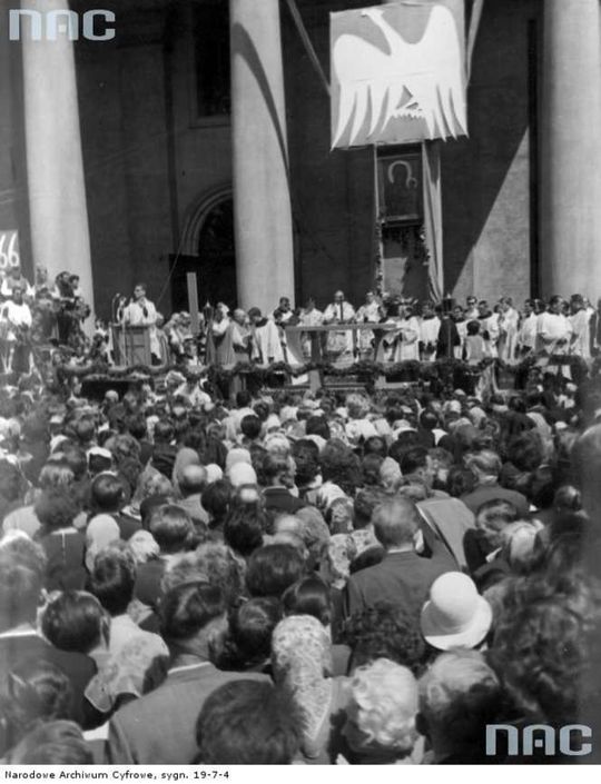 Główna uroczystość milenijna. Msza Św. celebrowana przez metropolitę krakowskiego ks. arcybiskupa Karola Wojtyłę.