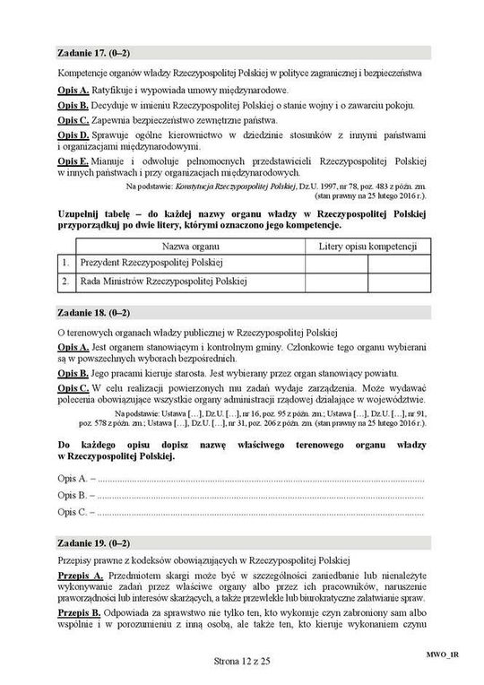 Zdjęcie: Matura 2016: WOS rozszerzony - ARKUSZ CKE