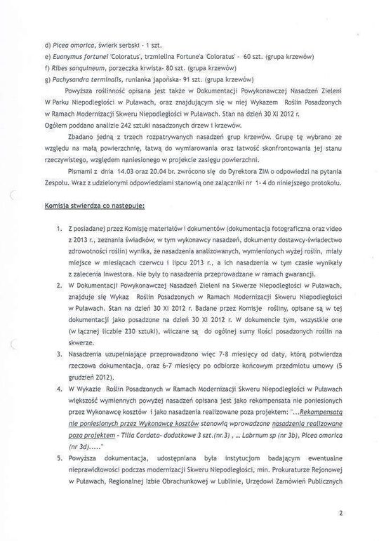 Skwer Niepodległości - protokół z kontroli