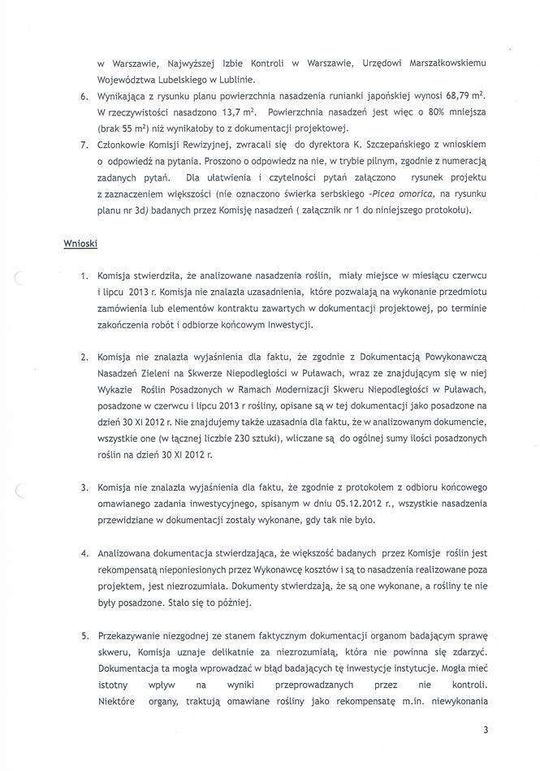 Skwer Niepodległości - protokół z kontroli