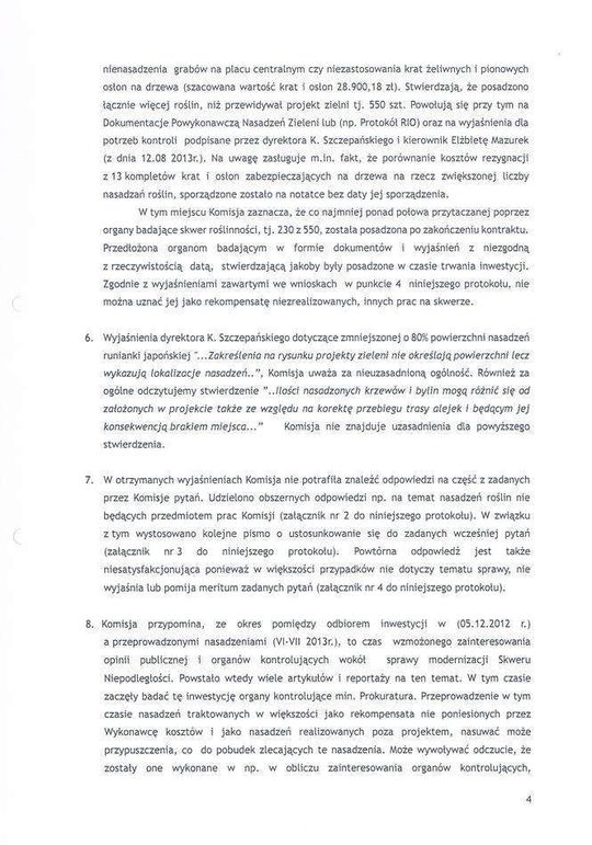 Skwer Niepodległości - protokół z kontroli