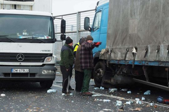 Wypadek na obwodnicy: Zderzyły się dwie ciężarówki, w jednej były kurczaki