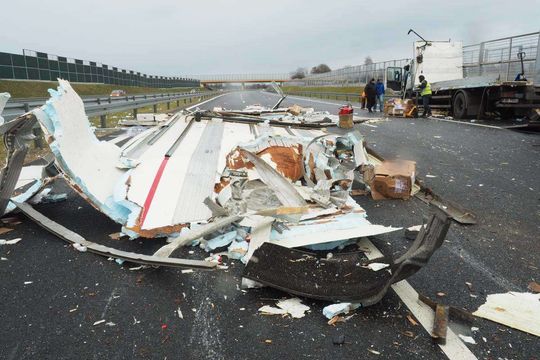 Wypadek na obwodnicy: Zderzyły się dwie ciężarówki, w jednej były kurczaki